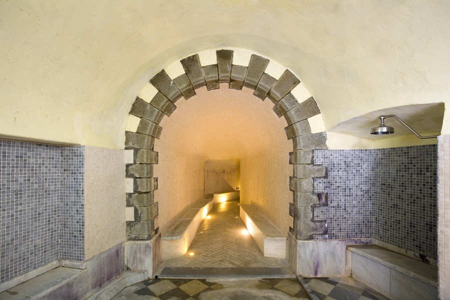 Two natural steam caves are required: the "Grotta Grande" and the smaller "Grotta Paolina", so called in honor of Napoleon's sister, a frequent visitor. In which cave the internal temperature varies according to the height so it is warmer at the height of the human trunk and lower at the feet.